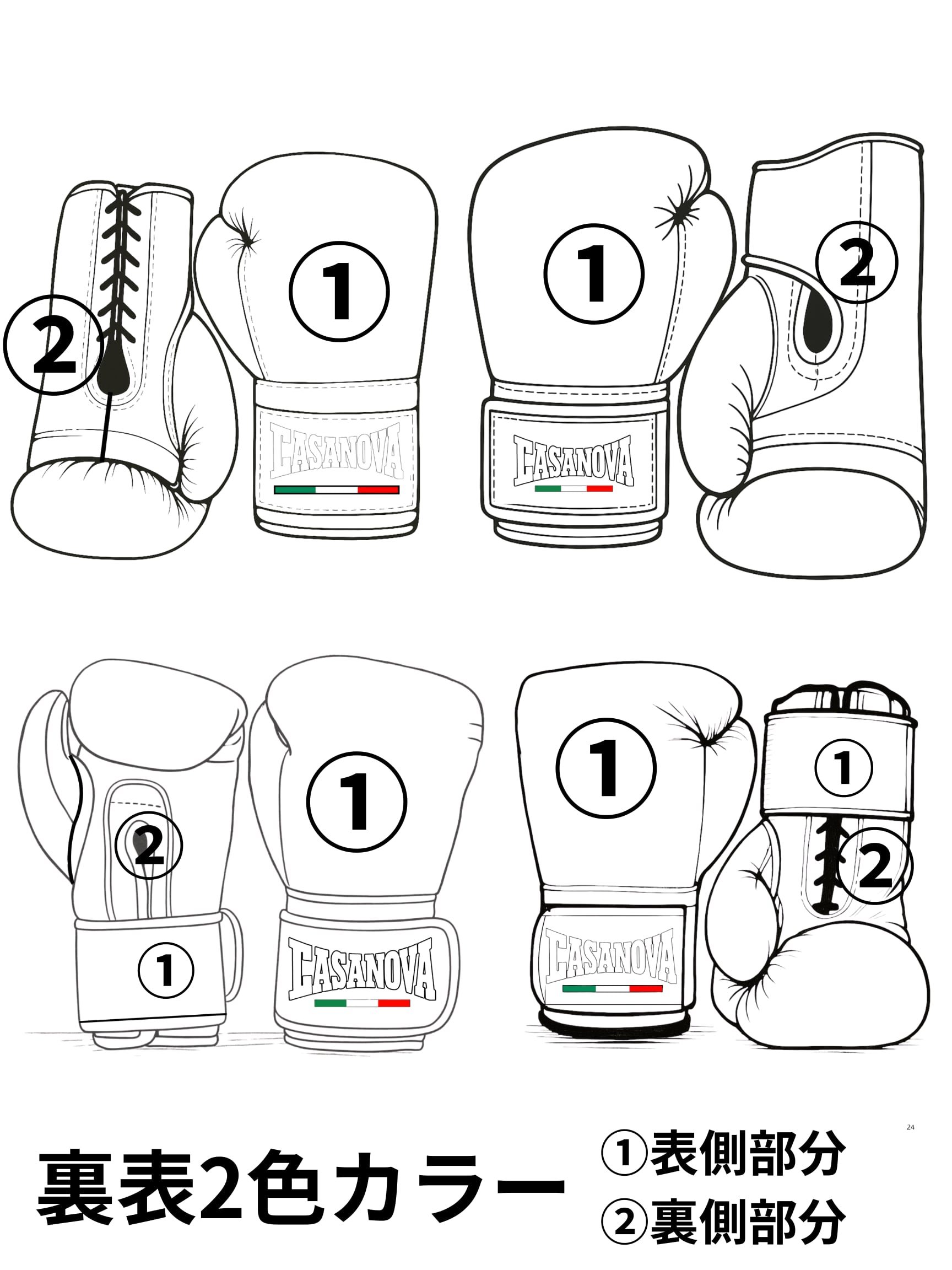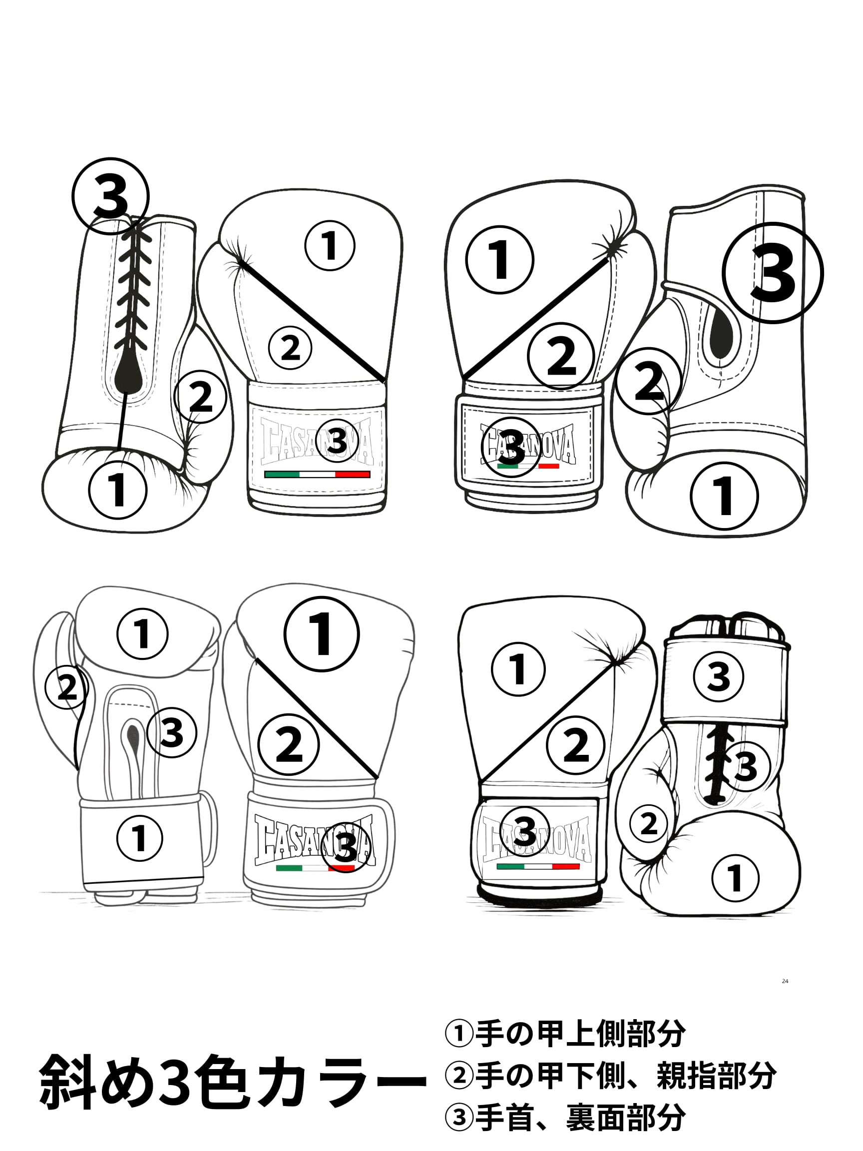 ・希望のカラー割りタイプを選択、指定位置の番号に沿って希望カラーを入力して下さい(カラー割り位置はサンプル写真を参照して下さい)